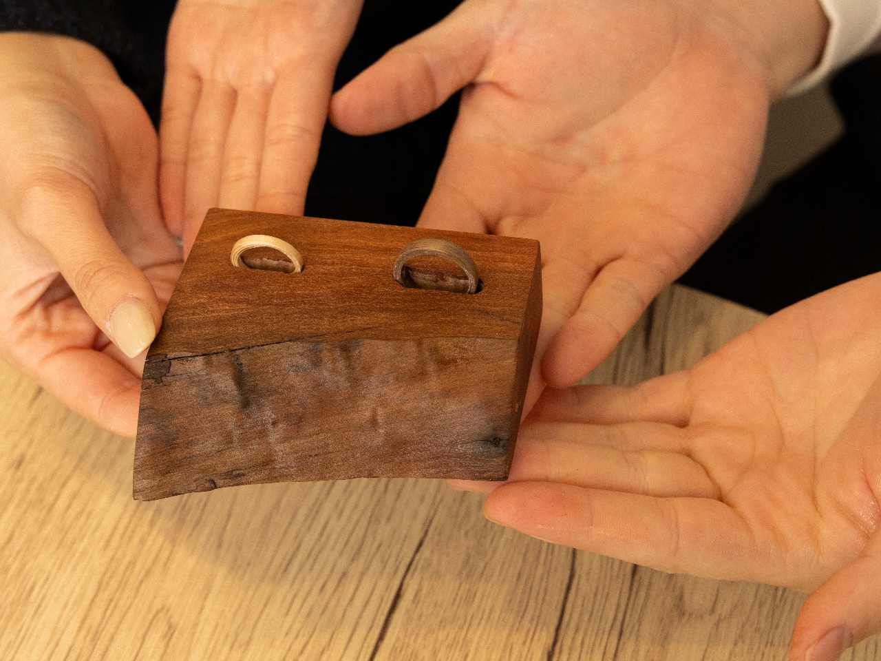 大東市が舞台となった愛の物語〜お染久松〜になぞらえた木製ペアリング&木製リングピローづくり体験。 温かみのあるデザインと職人技が光るオリジナルアイテムを2人のかけがえのないLOVE STORYに添え