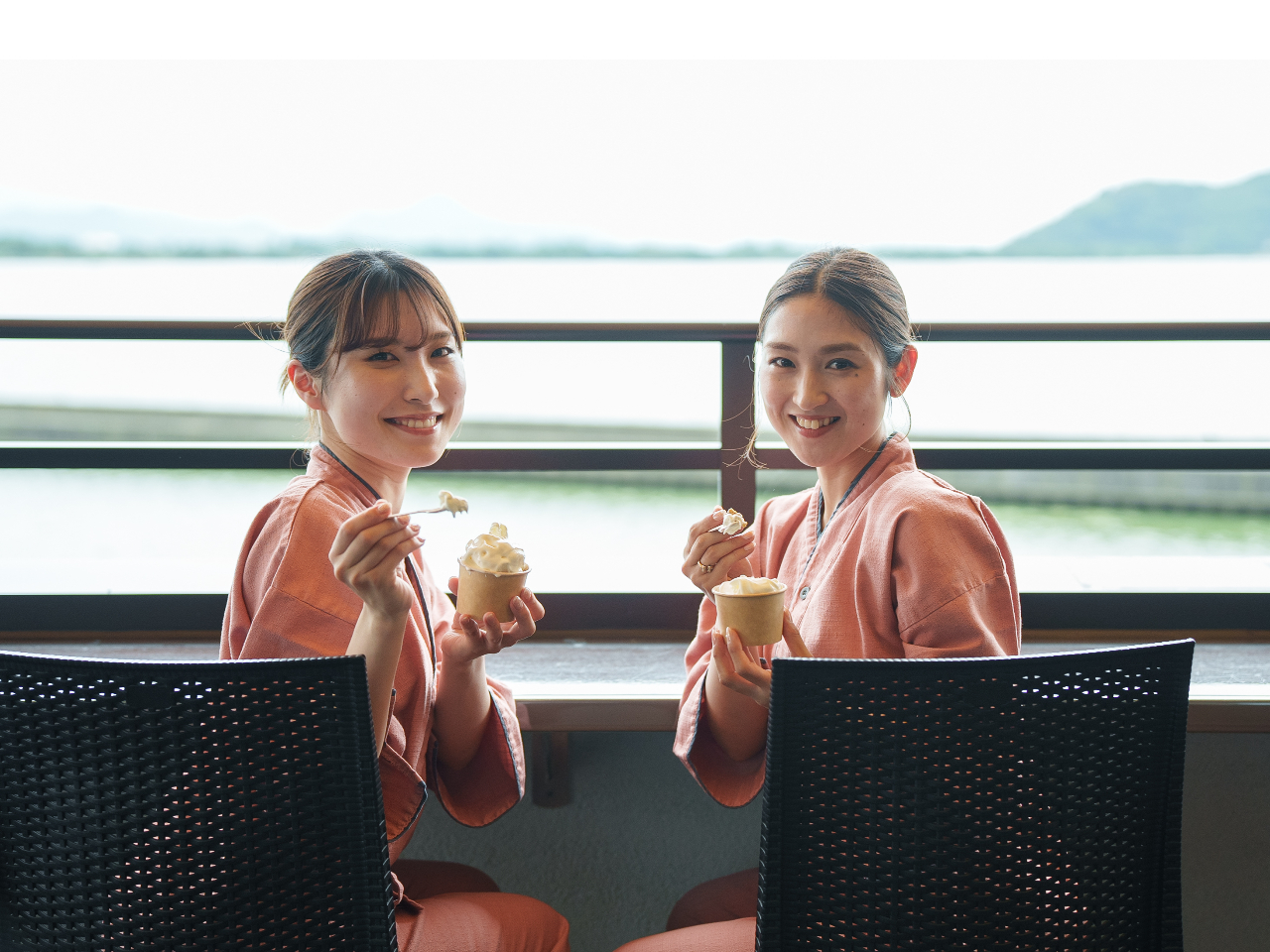琵琶湖が一望できるテラスでゆっくりお過ごしください。