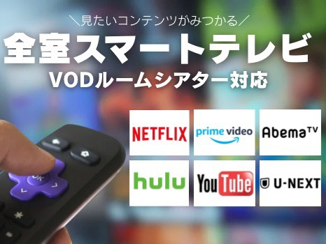 ・テレビ :全室スマートテレビ完備。NetflixやYoutubeなどをご覧いただけます。