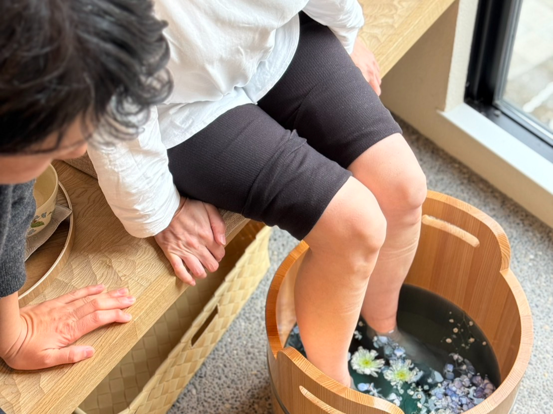 鎌倉を象徴するブルー【鎌倉別邸限定の足湯&フットマッサージ30分コース】海、空、紫陽花。色がうつろい変わっていく様子を表現した足湯<鎌倉ブルー>|神奈川・鎌倉《ファミリー・カップル・女性におすすめ》