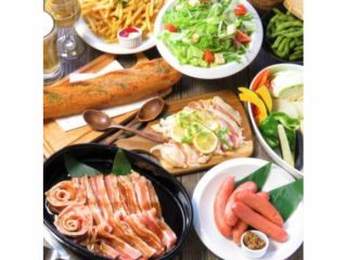 【手ぶらでBBQ&飲み放題2時間】☆テラス人気 No.1☆豚カルビ+BIGソーセージ付きの計8品!お好きな飲み物&食べ物持ち込みもOK♪
