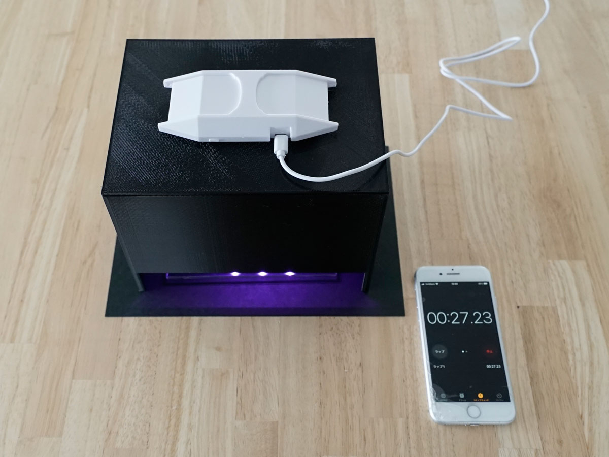 紫外線露光フィルムを重ねて紫外線を照射し、現像します