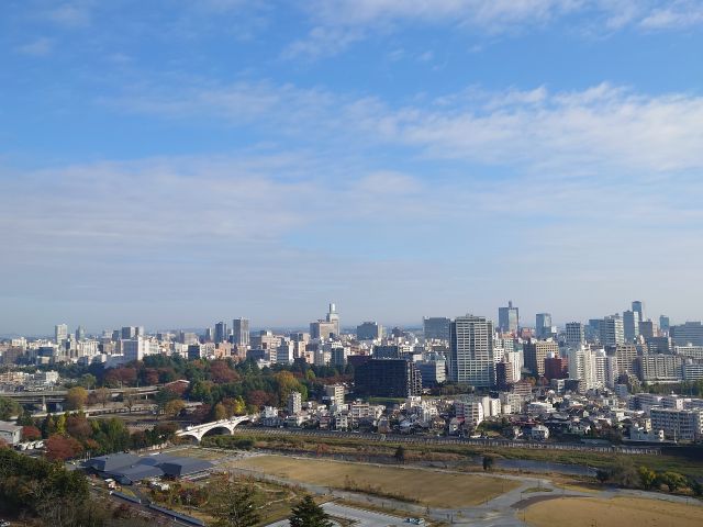 仙台の街並みを一望できる仙台城跡で、伊達政宗公になった気分を味わえます。