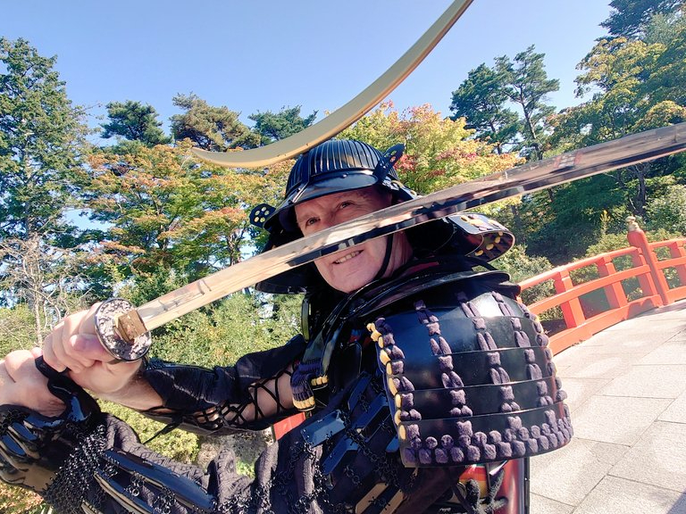 甲胄を着た後はその場で刀を持って記念撮影開始!カッコイイポーズを決めましょう!