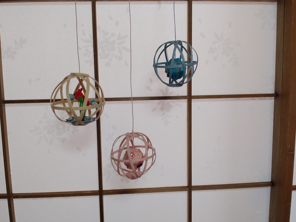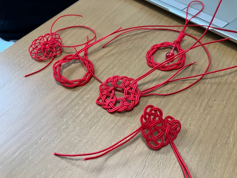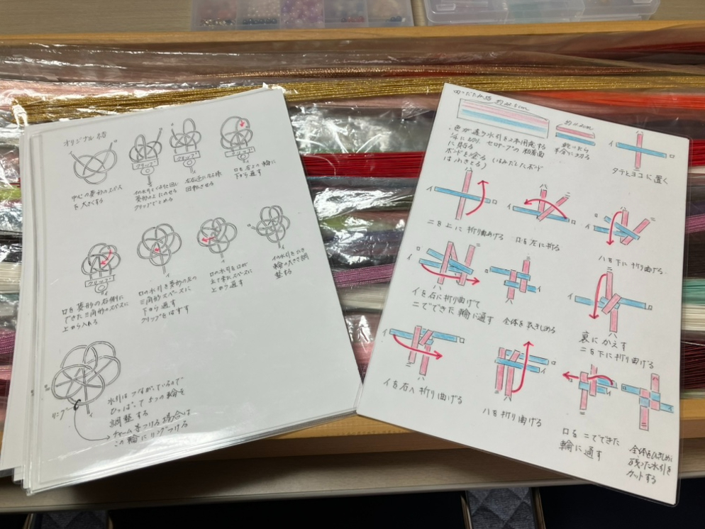 2 作品にあわせて様々(あわじ、平梅、玉、かけ結び等々)に結んでいきます