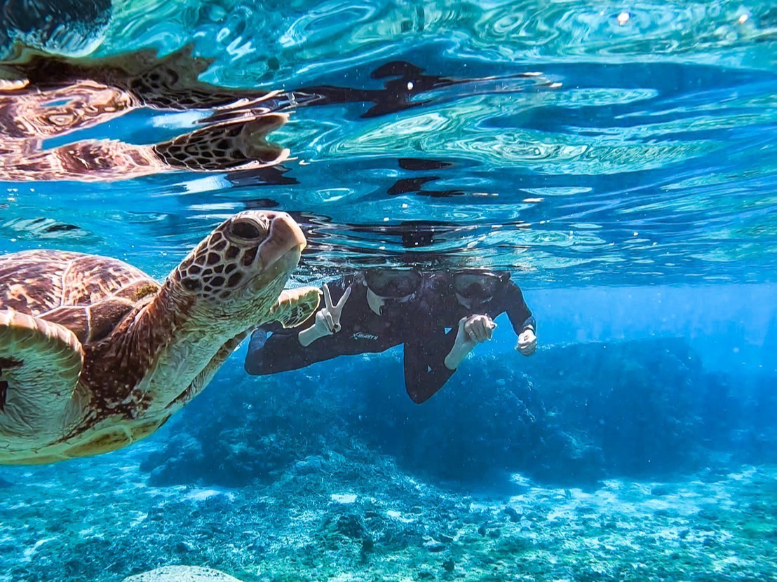 経験豊富なガイドがウミガメが生息するポイントを熟知しております。
