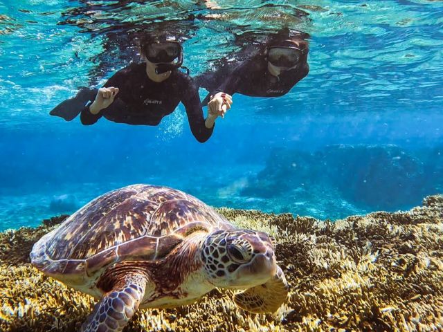 宮古島の美しい海で、ウミガメやカクレクマノミ(ニモ)に出会えるシュノーケリングツアー!