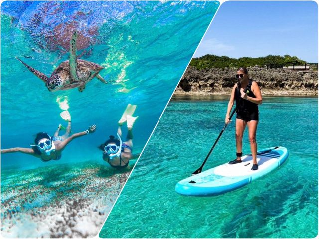 【宮古島/送迎可能】【宮古島満喫プラン!ウミガメシュノーケリング×ビーチSUP】送迎・写真・動画データ無料!