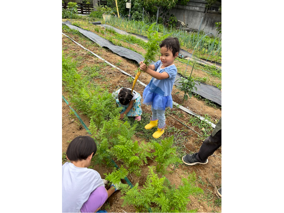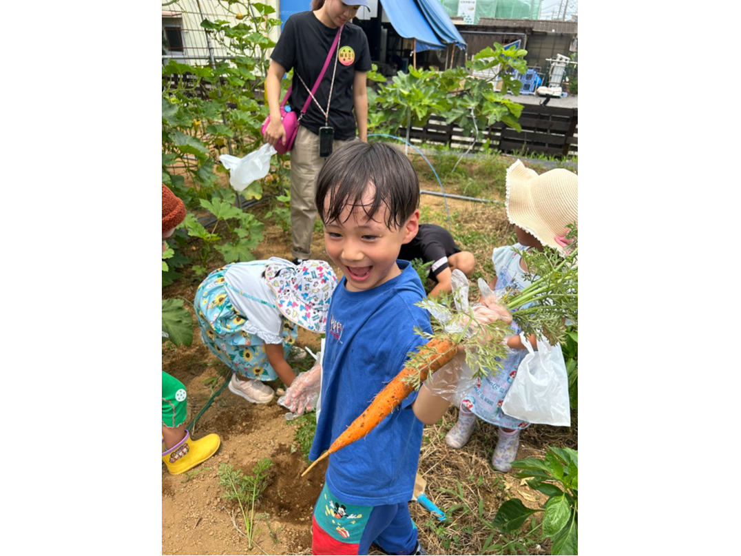 いつも食卓に並ぶお野菜を自分の手で収獲した子供たちの誇らし気でキラキラした笑顔が溢れます♪園内では色々な野菜の成長過程も見学できます。