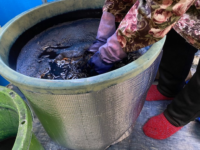 藍染液に漬ける時間・回数で色の濃さが異なります!