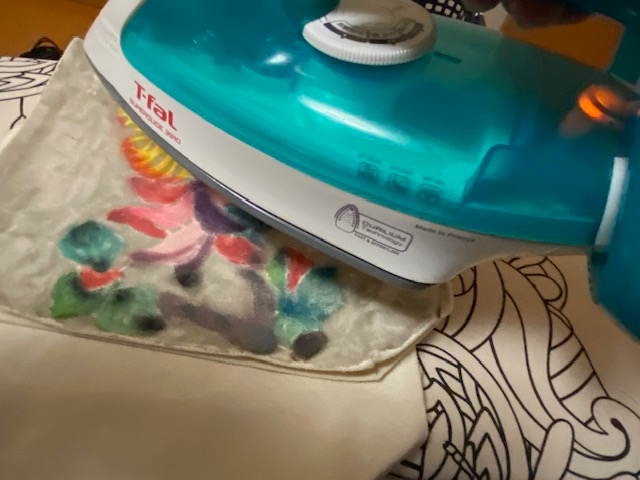 アイロンで熱を加え色を定着させる