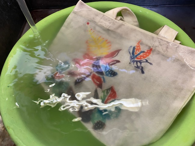 A型置きされているミニトートバッグにお好みの色を塗る