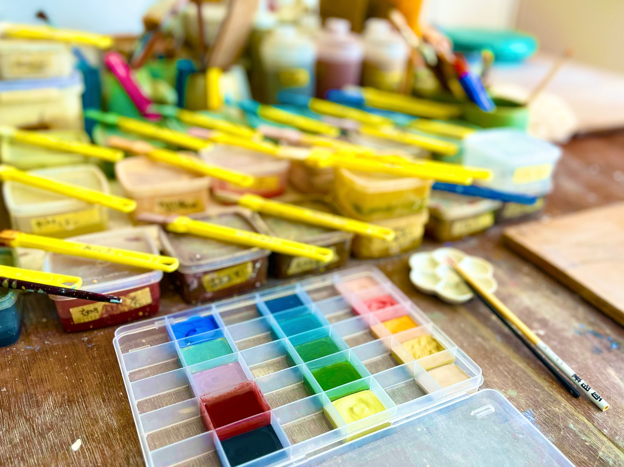 釉薬5色(白黒茶るり透明)と化粧土(10色以上オプション)から好きな色を選べます。