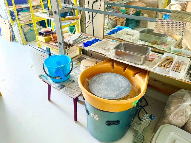 電動ろくろと手ろくろを交代で使うことも可能です。