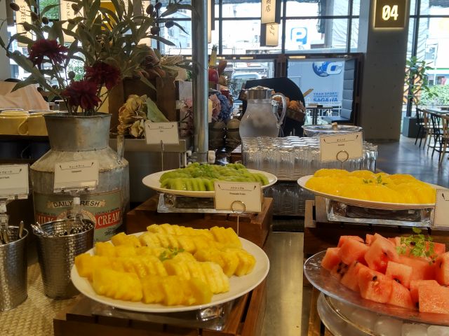 サラダ、デザート、フルーツ、ソフトドリンク付き