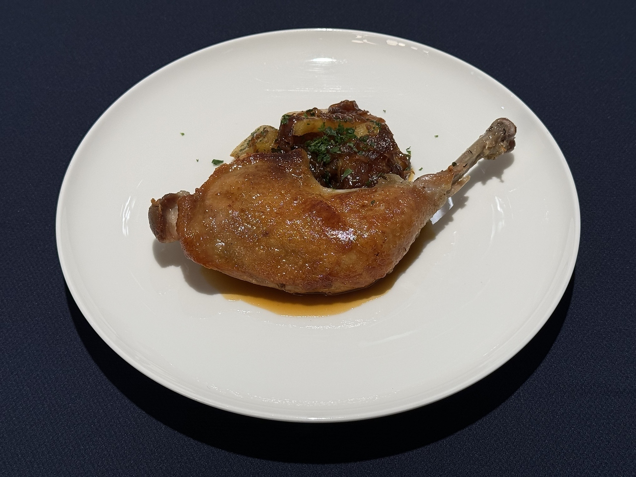 \クリスマス限定♪/奥三河どり骨付きもも肉のコンフィ(じゃがいものリヨネーズ風)|クリスマスのご褒美チキン(2,300円)