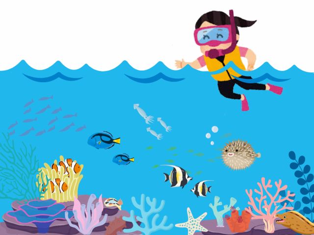 ビーチとは違い、人が少ない静かなエリアで、より自然に近い海の世界を体験。