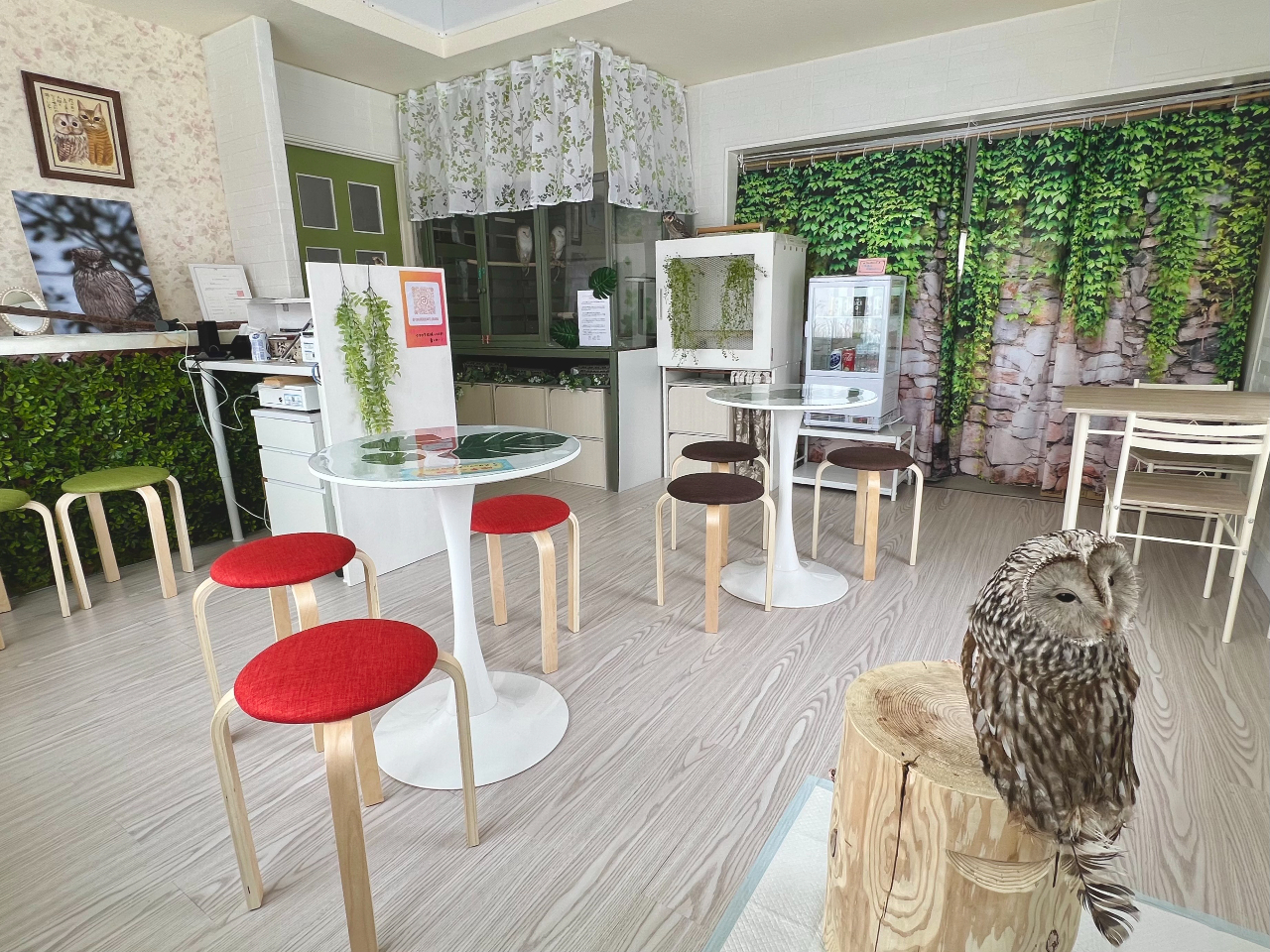 大自然に囲まれたこのカフェで、ふくろうたちの愛らしい姿を間近で楽しみながら、癒しのひとときを過ごしましょう。
