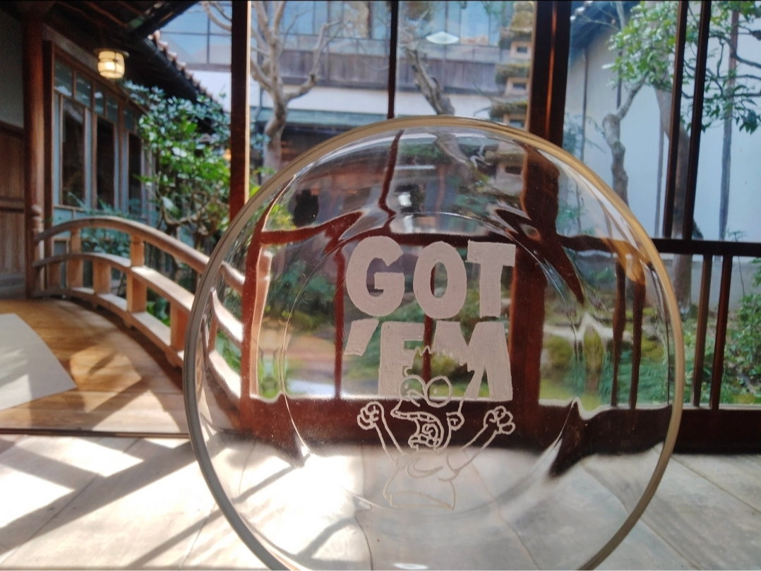 日付や名前を彫って旅行の記念にいかがでしょうか\( 'ω')/ガラス細工作り