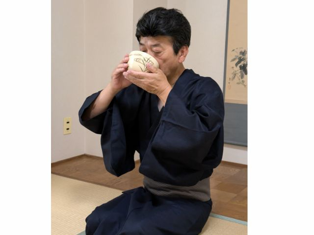 お茶の頂き方もご一緒に! そしてお茶碗を拝見しましょう。 「あら、そのお茶碗はニワトリですか?」「ニワトリだけに、ケッコーな人気です」