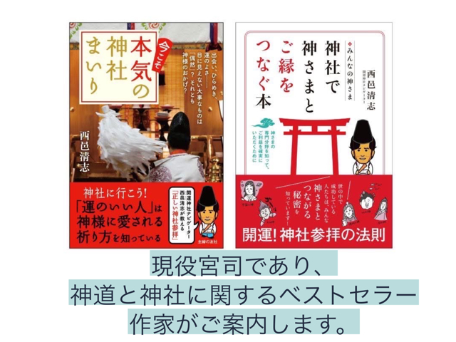 累計売上10万部以上を突破した著者西邑先生監修の参拝作法を開運神社ナビゲーターがご案内致します。