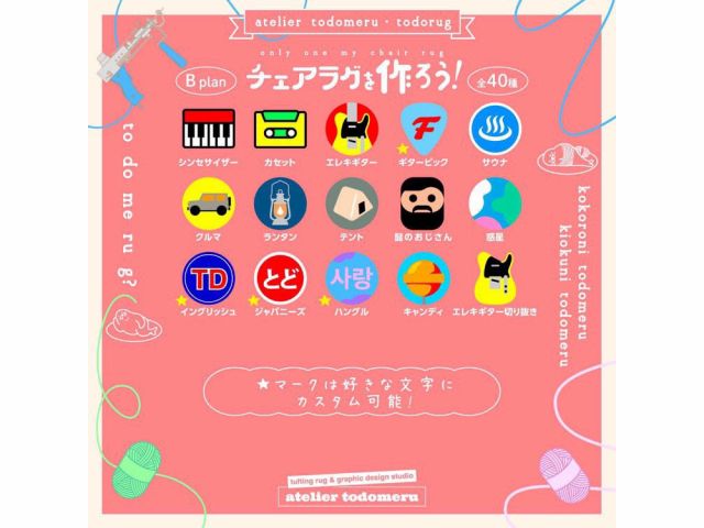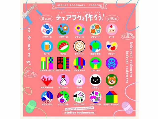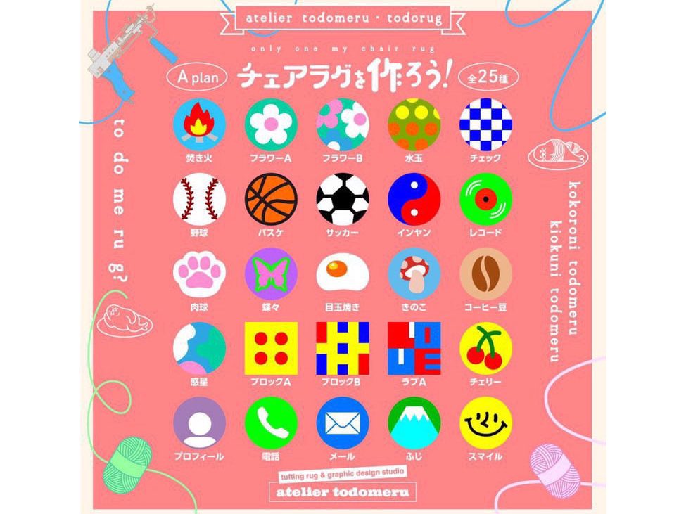 【千葉・タフティング】チェアラグが作れるプラン♪デザインは65種類《ファミリー・カップル・お友達同士でお揃いも◎》