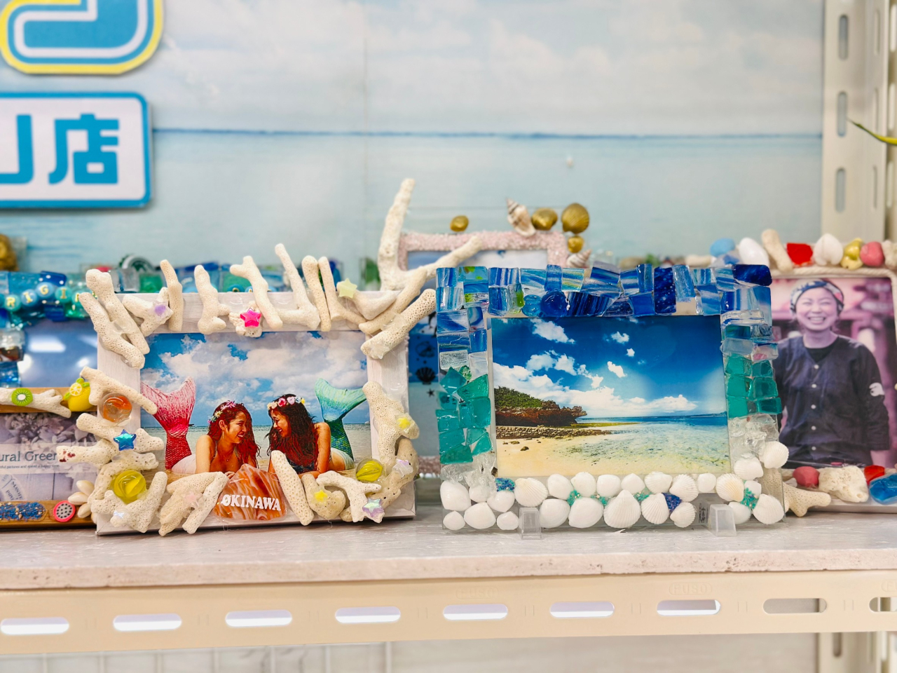 琉球ガラスやサンゴを散りばめたフォトフレーム