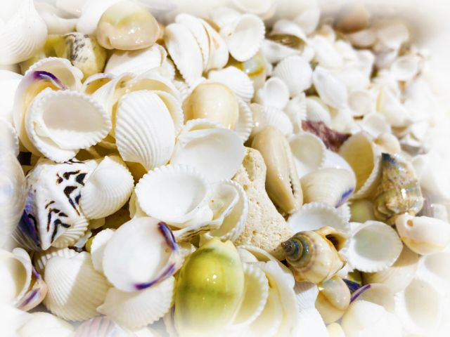 琉球ガラスとサンゴや貝殻や飾りパーツでオリジナルフォトフレームづくり
