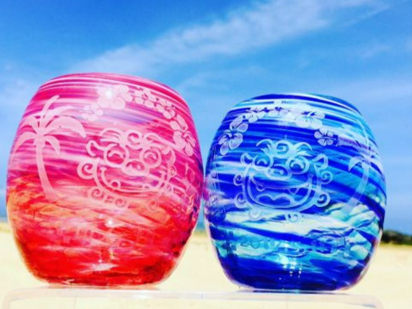 琉球ガラスにサンドブラストでオリジナルデザインを彫刻出来ます!