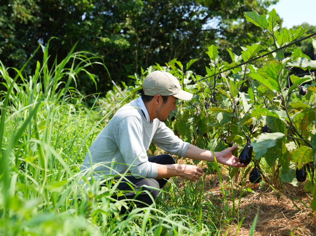 自然の力を活かした「自然農」「不耕起栽培」という農法で土や植物、本来の力を大切にしながら野菜を育て、今は年間70品目ほどの旬の野菜をセットにしてお届け中!