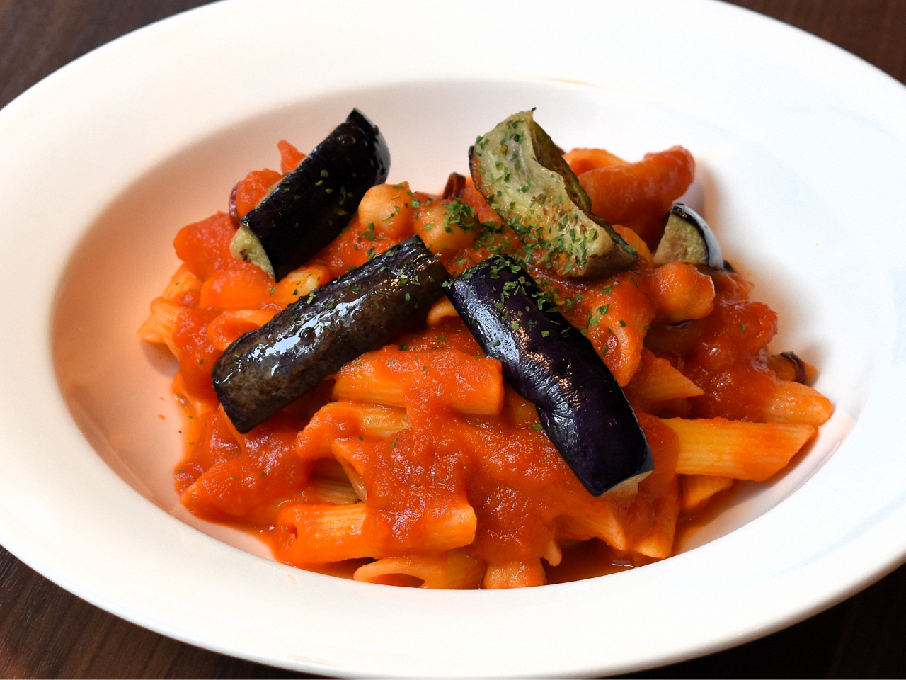 9月メニュー/秋ナスとひよこ豆のペンネアラビアータ