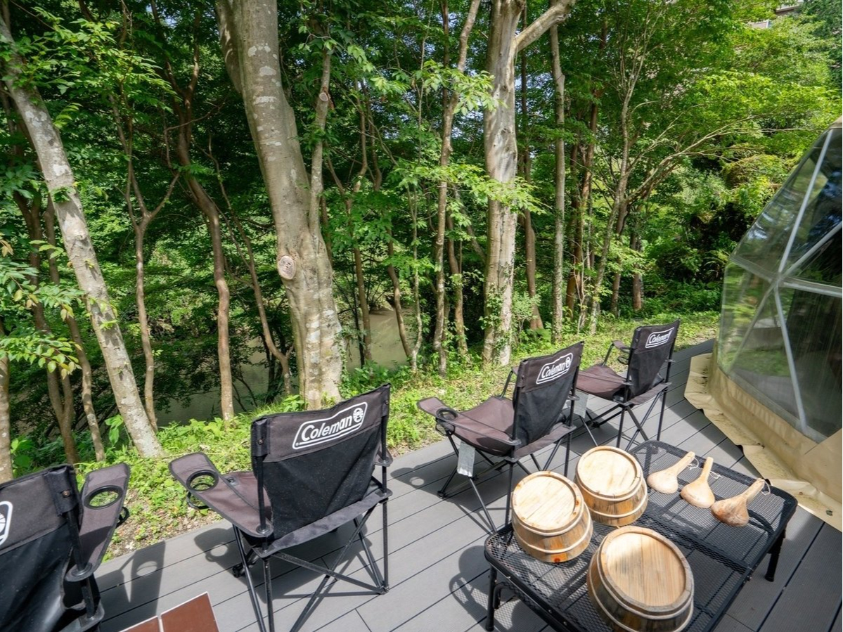 箱根仙石原の一等地。バレルサウナの目の前には川が流れており、せせらぎの音がBGM。