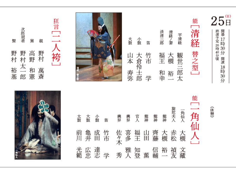 大阪城西の丸薪能2025|5月25日(土)17時30分〜【SS席】12000円|能《清経 替之型》狂言《二人袴》能《二人袴》