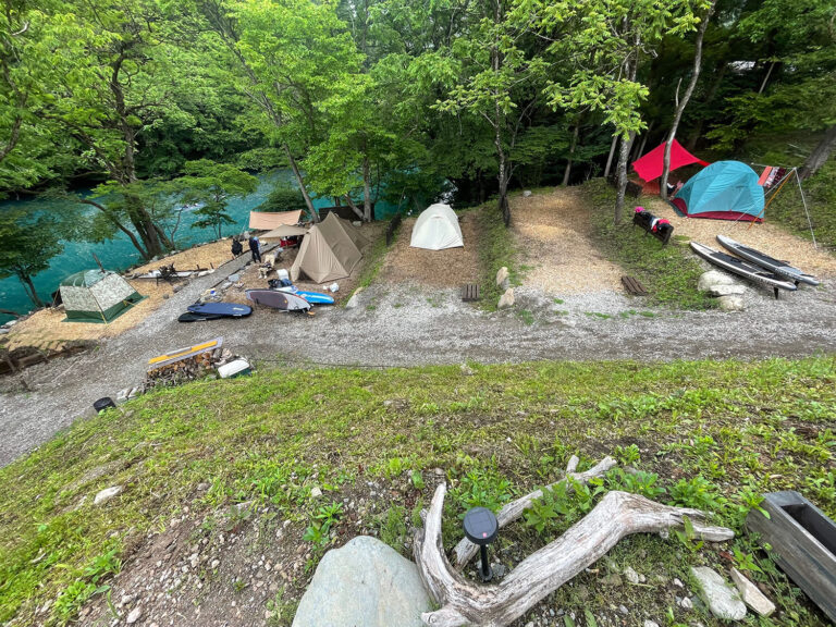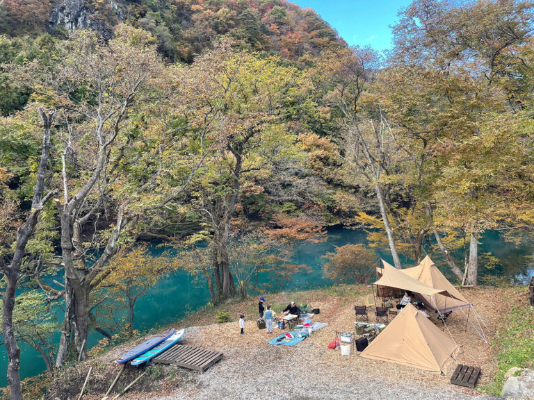 青い湖「四万湖」の湖畔にある唯一のキャンプ場。