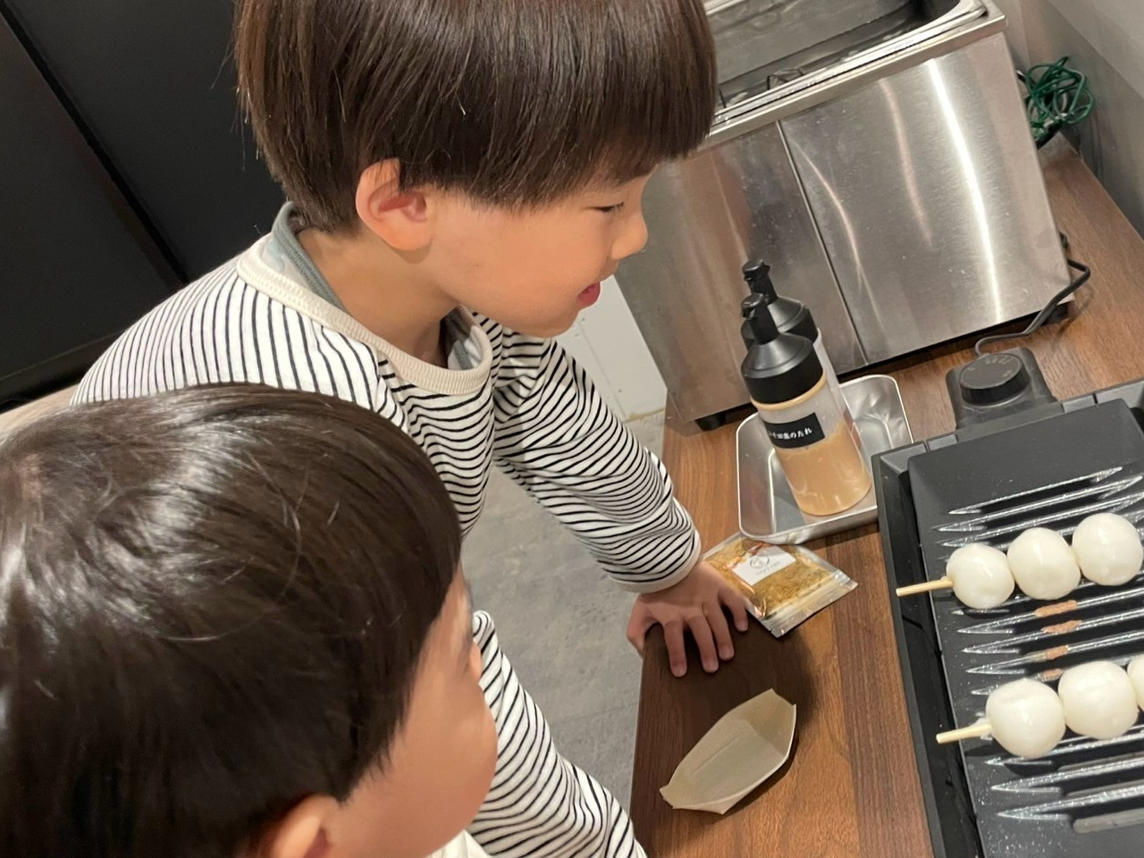 出来上がったらお楽しみのお味見♪お団子を焼いたり…
