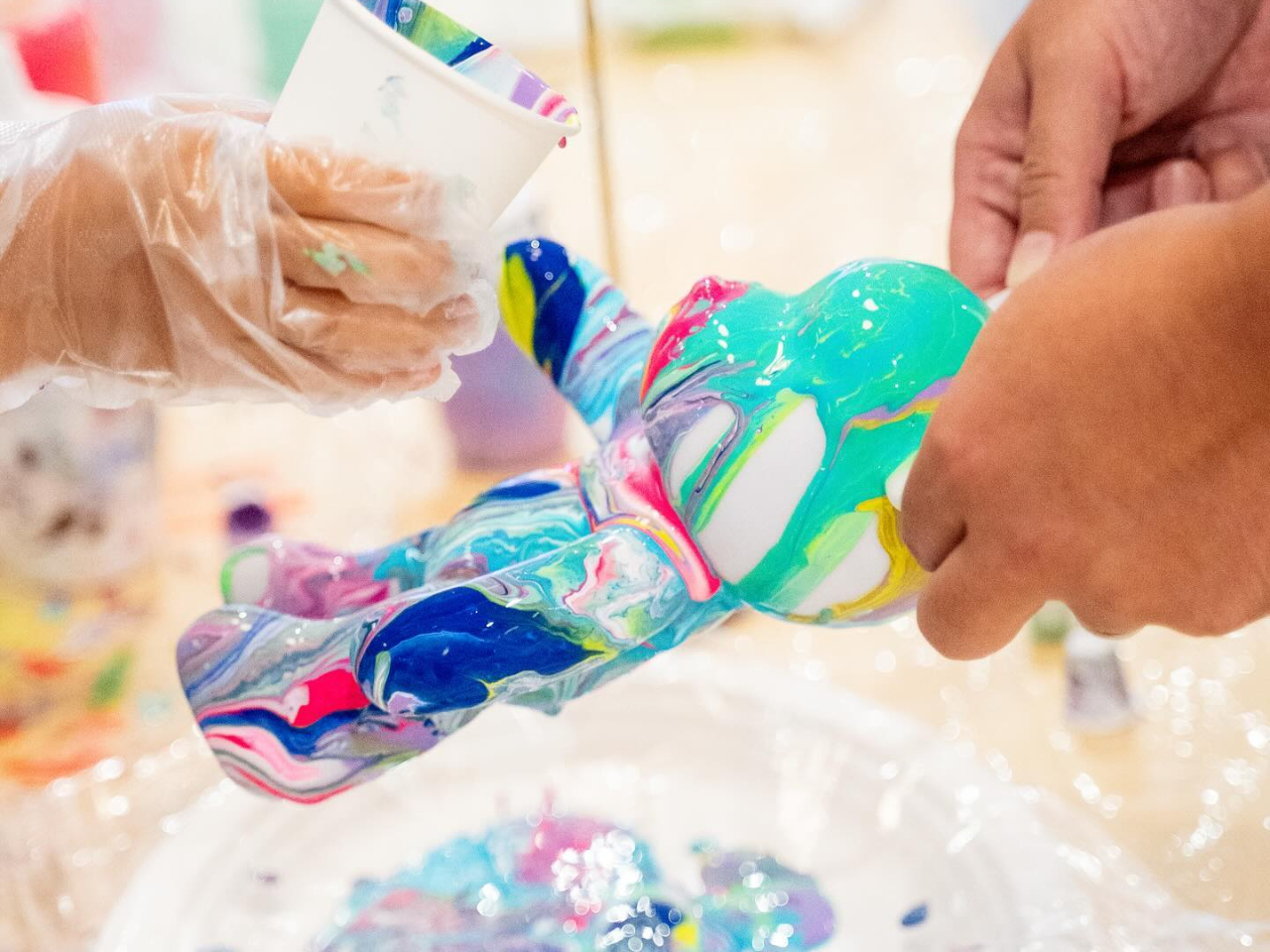 特殊な絵の具を垂らすだけでマーブル模様のオリジナルフィギュアがつくれます