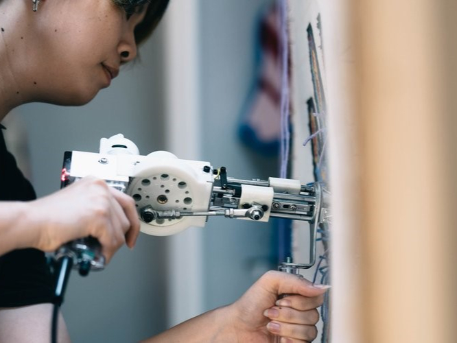 Bタフティングガンを使って実際にタフティングの練習をしながら制作する