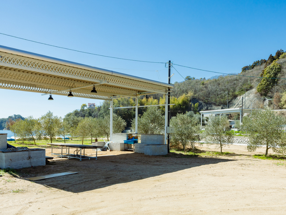 元々私たちが、運営していた遠浅の「カープビーチ」を含めて、UCHIUMI RESORTと改め、その中のキャンプ場のエリアを「島のキャンプ場 ホシアカリ」としました。そのキャンプ場の海のサイトは「波うち」として、オリーブの木を残した自然豊かなキャンプサイトとして利用しています。