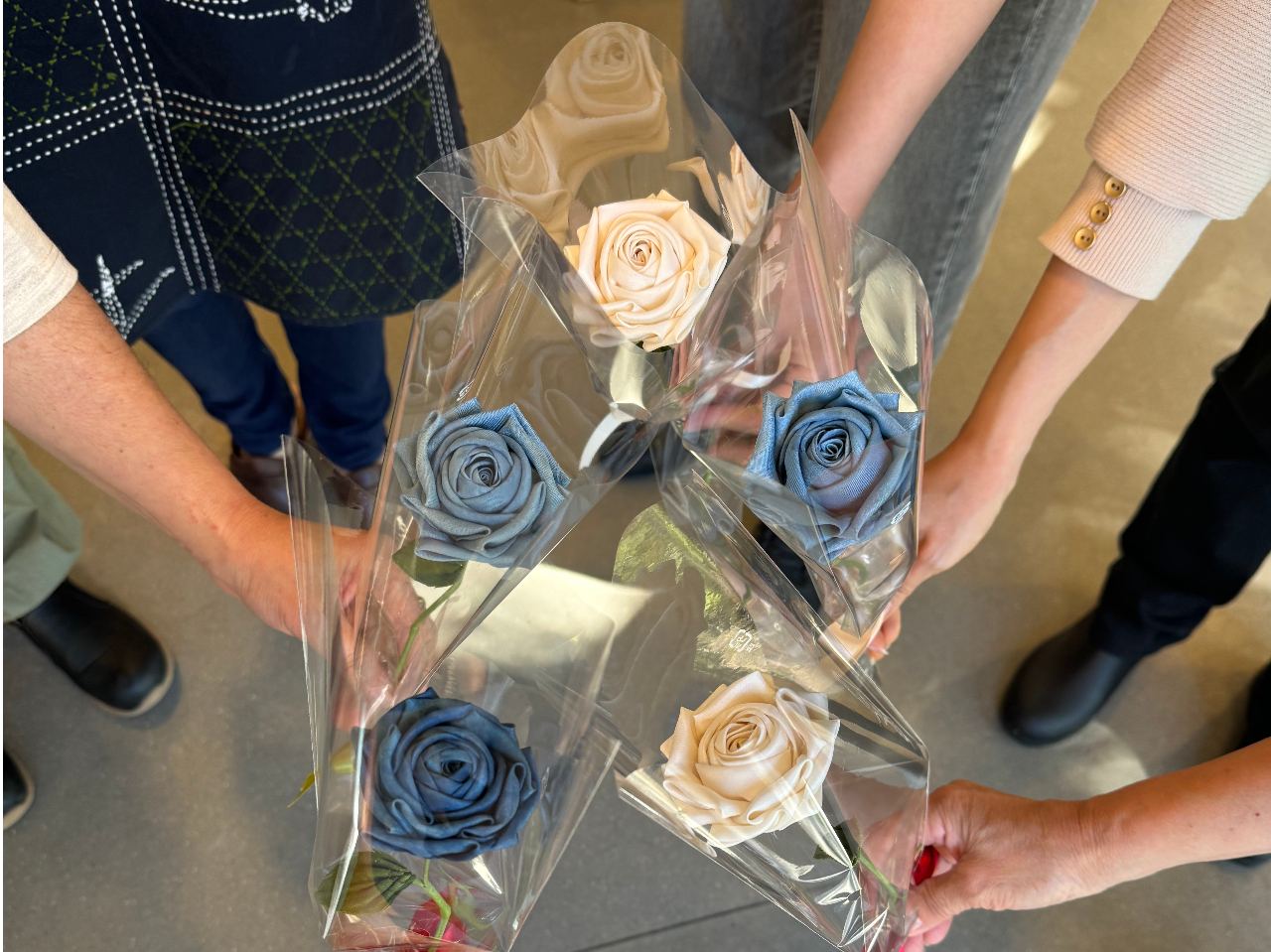 着物を素材に日本の伝統技術「つまみ細工」の技法を使って「薔薇」の造花を製作します