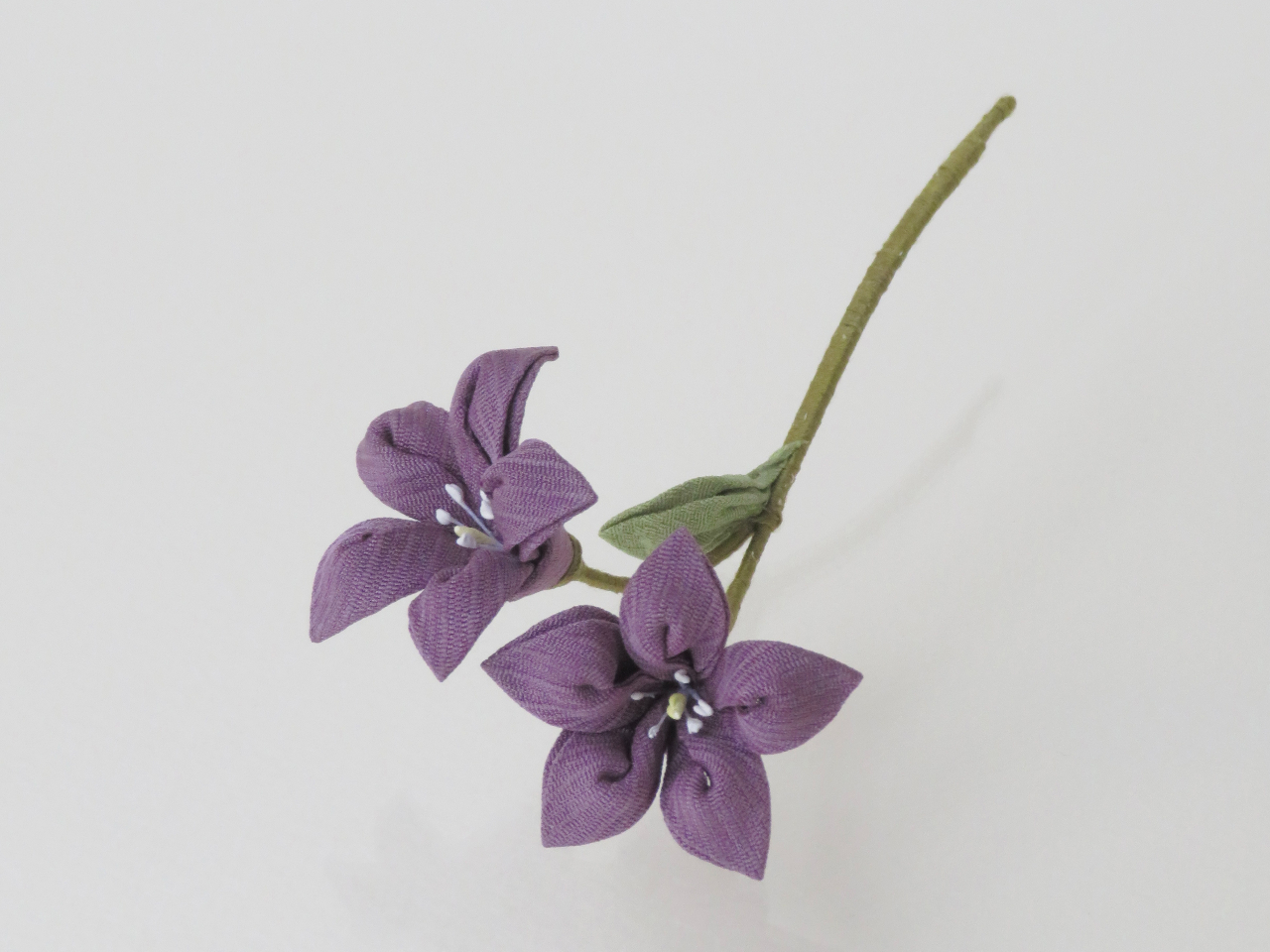着物を素材に日本の伝統技術「つまみ細工」の技法を使って「桔梗」の造花を製作します