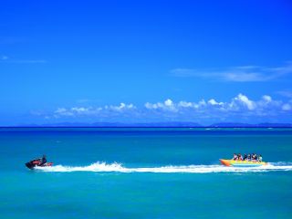 【宮古島】〈バナナボートクルージング〉スリル満点!宮古の海を満喫!【写真データ/備品レンタル無料】直前予約OK!小学生以上、女性お一人もおすすめ♪ヒルトン宮古島プール・ランチブッフェ割引券付