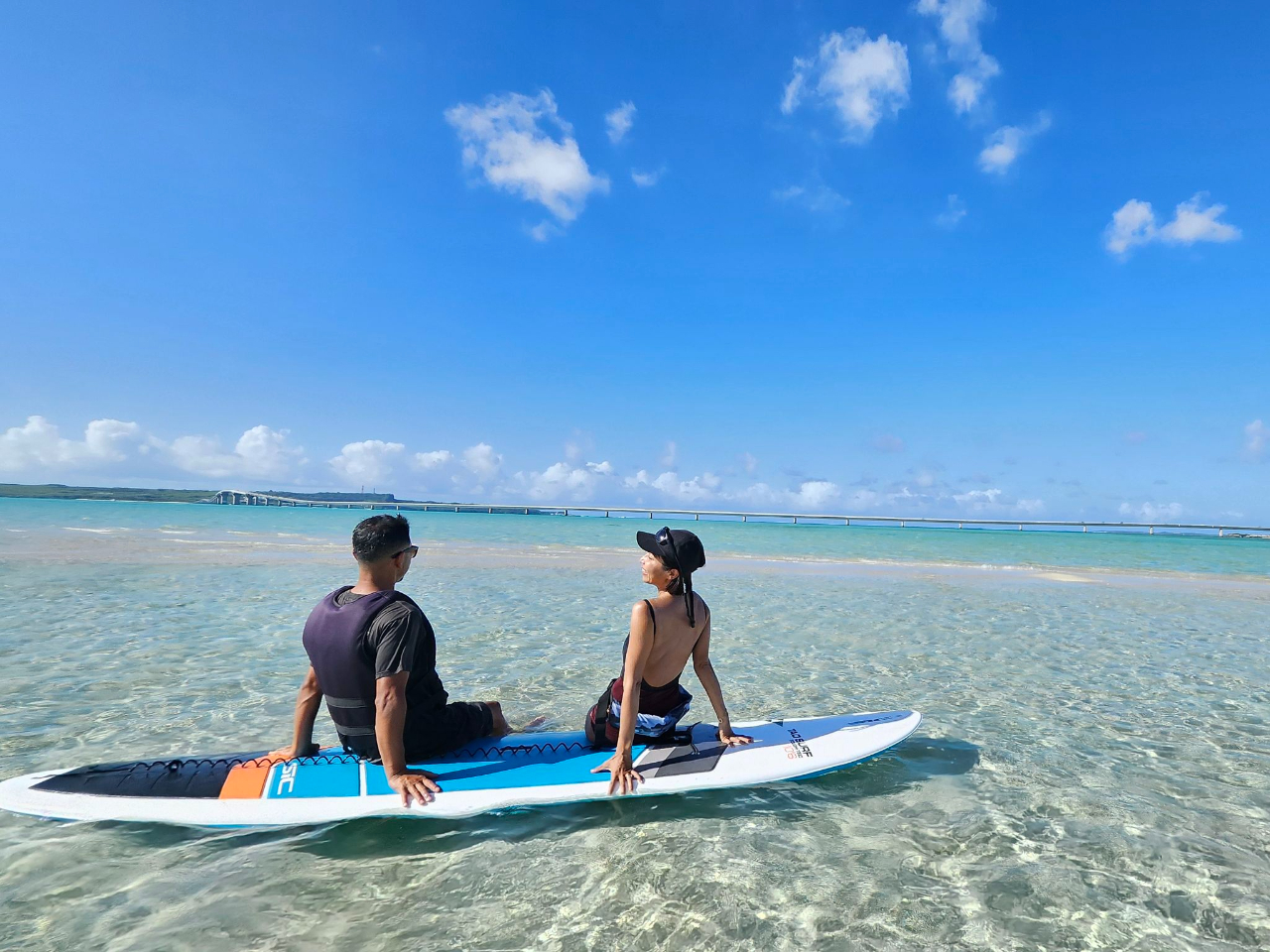 【宮古島】〈体験SUP〉伊良部大橋をくぐろう!初めての方も安心の海上探検【写真データ/備品レンタル無料】直前予約OK!小学生以上、女性お一人もおすすめ♪ヒルトン宮古島プール・ランチブッフェ割引券付