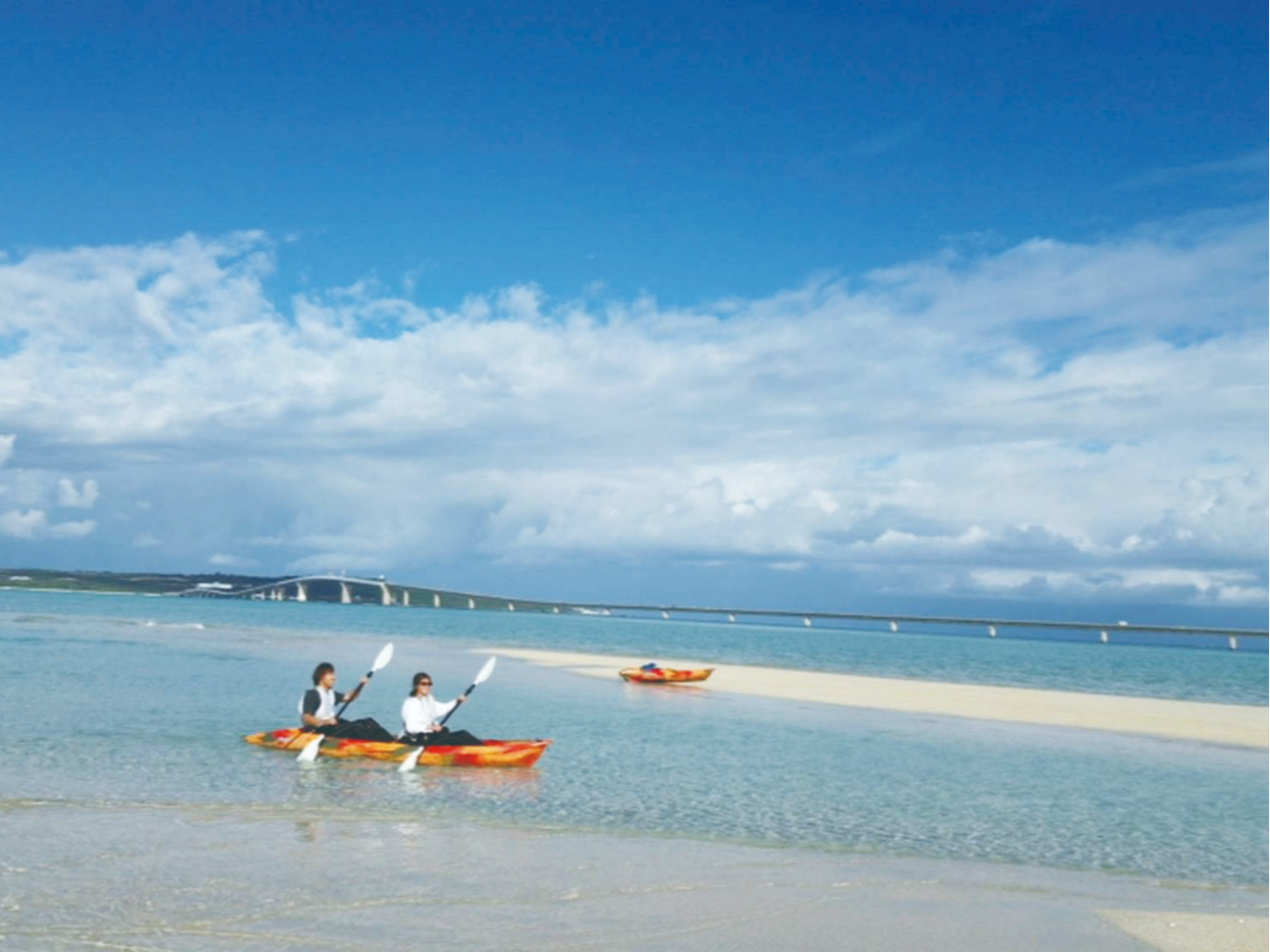 【宮古島】〈体験カヤック〉伊良部大橋をくぐろう!初めての方も安心の海上探検【写真データ/備品レンタル無料】直前予約OK!小学生以上、女性お一人もおすすめ♪ヒルトン宮古島プール・ランチブッフェ割引券付