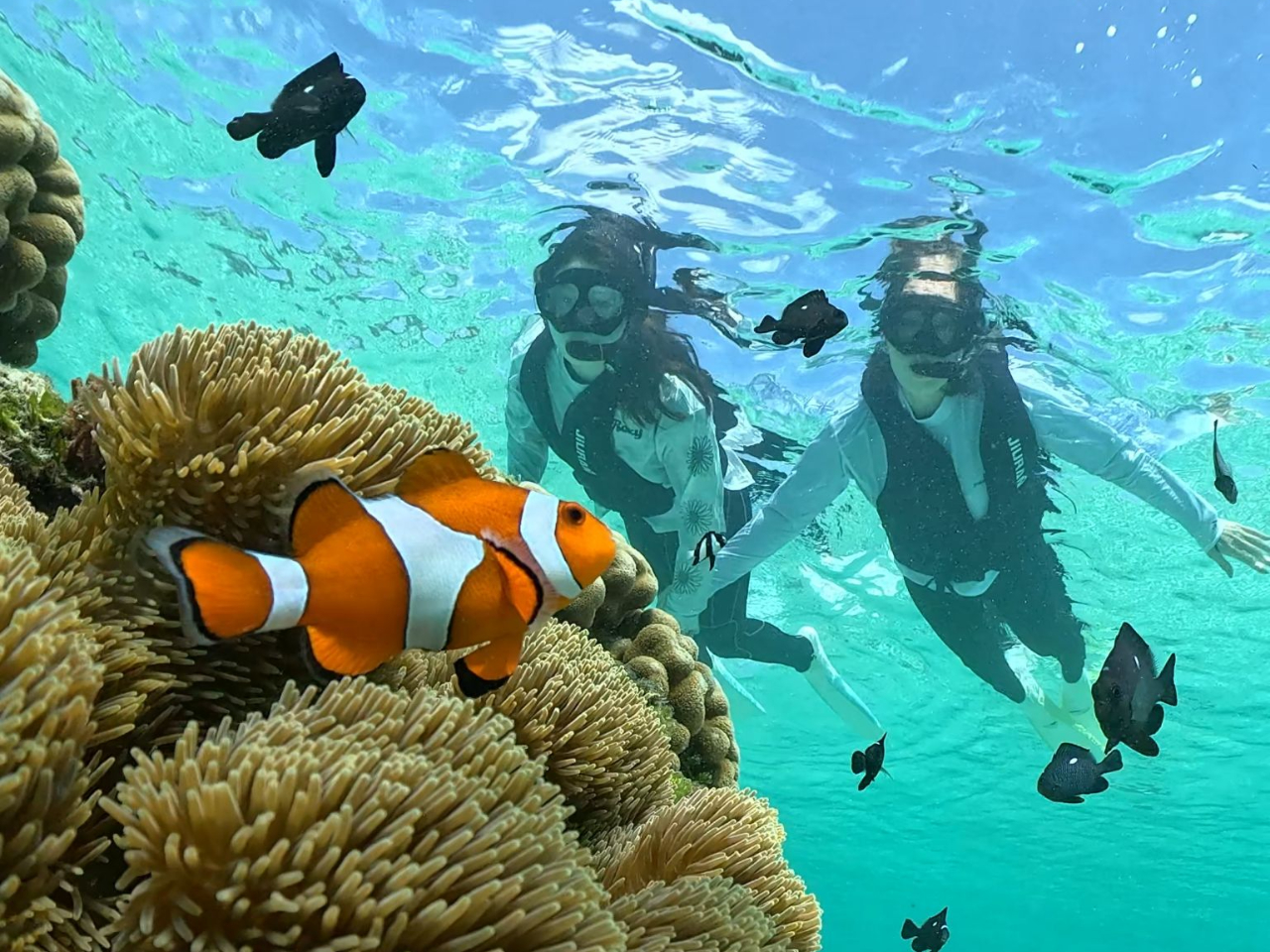 ガイドが安全に楽しくご案内いたします。シュノーケリング・ボートシュノーケル