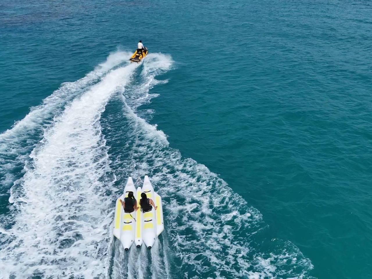 【宮古島】〈バナナボートクルージング〉スリル満点!宮古の海を満喫!【写真データ/備品レンタル無料】直前予約OK!小学生以上、女性お一人もおすすめ♪ヒルトン宮古島プール・ランチブッフェ割引券付