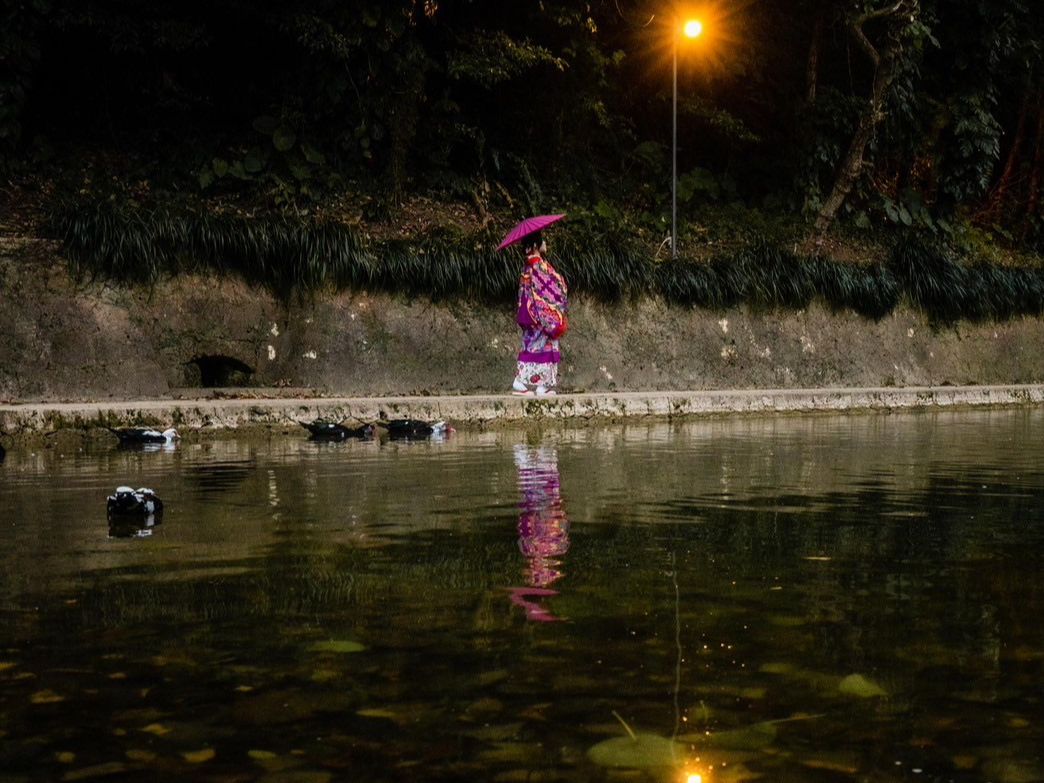 灯りに包まれた静かな街並みを彩る、美しい伝統衣装──それは、まるで映画のワンシーンのよう。あなただけの特別な思い出を残してください♪着物・浴衣レンタル・着付け体験