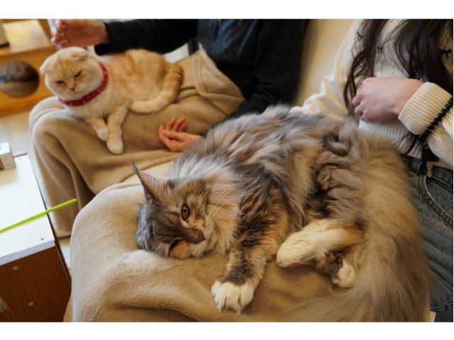 • タイミングが良ければ猫ちゃんがおひざに乗ったりすることもあります。