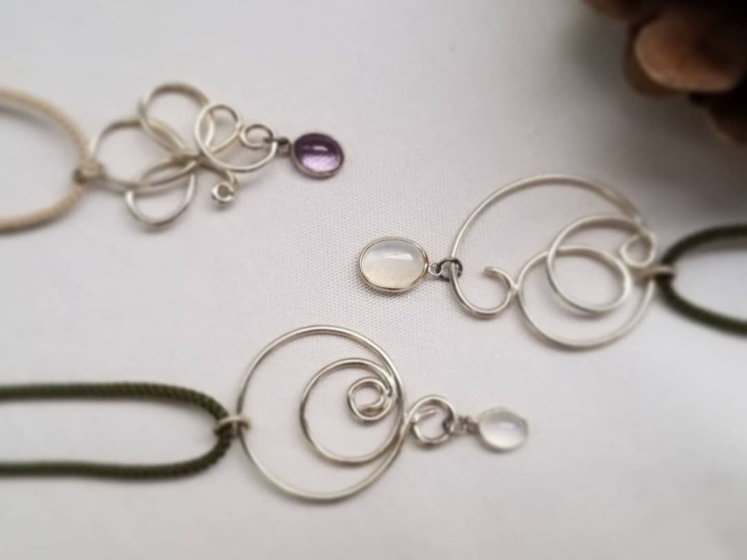 細かい作業が不慣れでも安心♪1本のシルバーワイヤーを曲げて、世界に一つだけのぐるぐるシルバージュエリー作りを体験してみよう♪天然石もお選びいただけます♪<ファミリー・カップル・女性にもおすすめ♪>