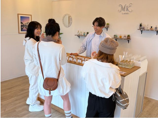 肌につけて香りの変化を確認し、世界に一つだけのオリジナル香水を作っていただけます♪