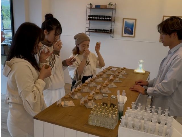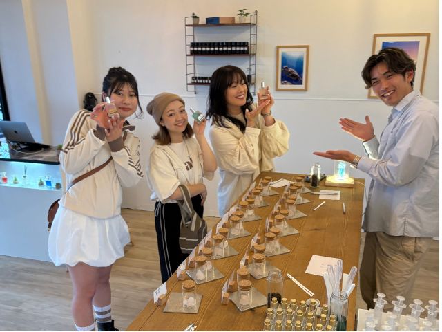 カップル・女子旅・家族旅行に人気の室内アクティビティ。30種類の香りから好きなものを選び世界にひとつの香水をプロと一緒に作れる大満足のものづくり体験です。石垣旅行の思い出を”香り”に閉じ込めませんか?
